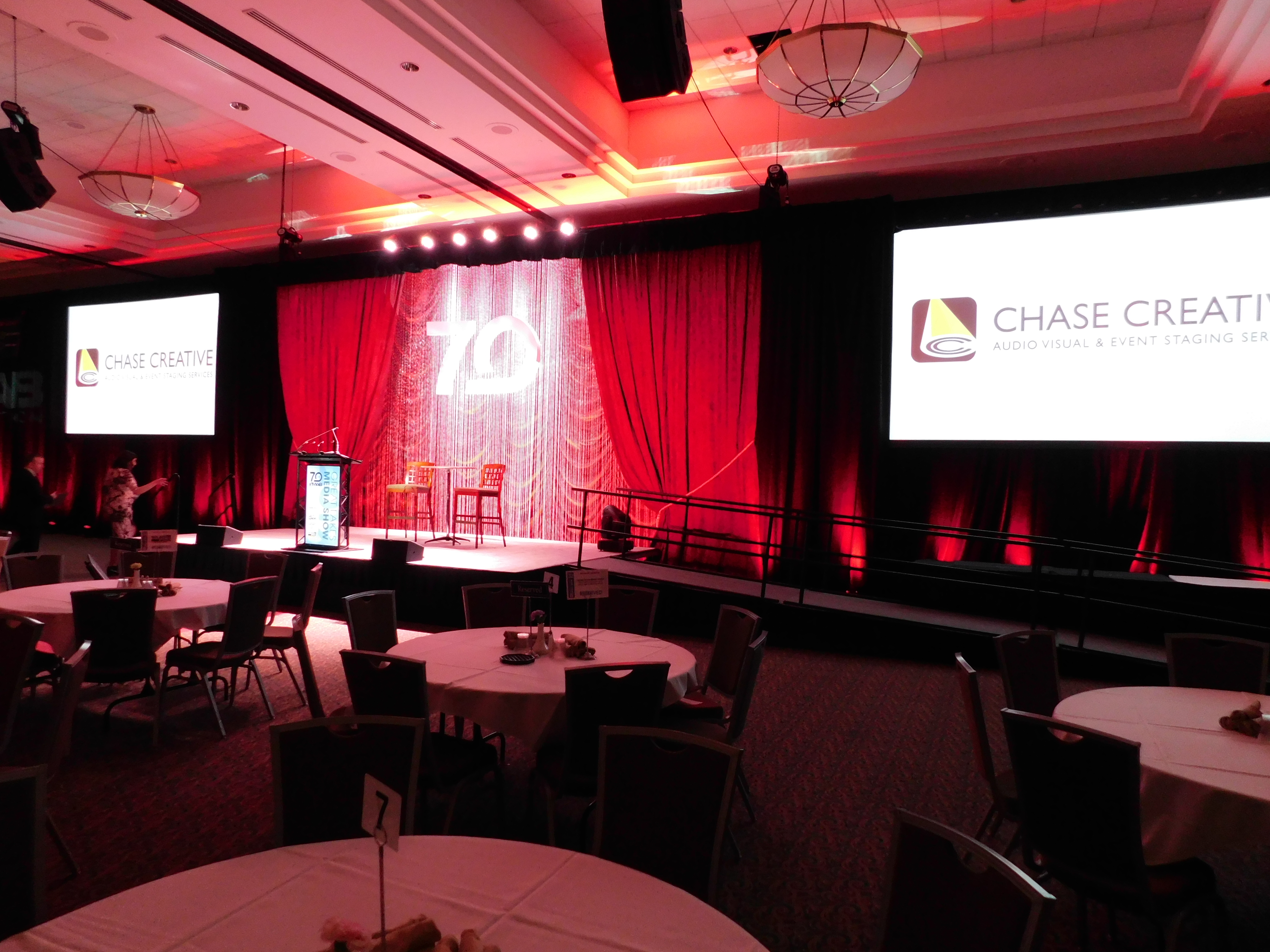 Chase Creative brings an extensive inventory of the latest in A/V equipment along with a professional, skilled staff guaranteed to enhance the professional quality of your event. The success of your presentation is highly dependent on format, screen size, lighting levels, and intelligible audio. A Chase Creative expert is happy to assist with these important decisions.